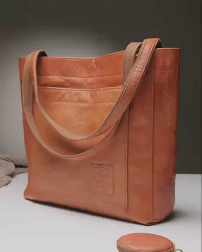 Meet Seville! This chic tote is the perfect companion for any modern woman on the move. This large handbag is greatfor running errands or days out with friends, and is large enough to fit your laptop for class or work. Seville will keep you organized with its handy phone pocket, zippered inside pocket, spacious front pocket, and key ring. Made of durable vegetable tanned leather, Seville is designed to last a lifetime.